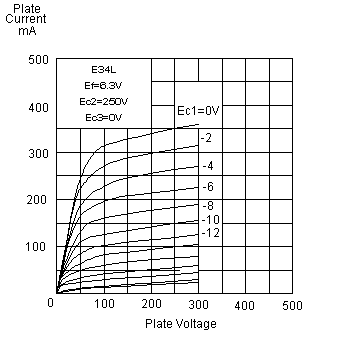 The E34L is a power pentode designed for use in audio frequency power amplifiers. The E34L is similar to the EL34. It offers increased transconductance and higher perveance. This allows more power output, while maintaining low bias and drive requirements.